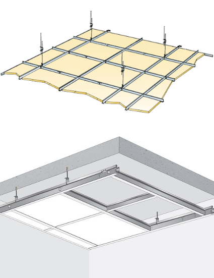 La structure peut se fixer sur charpente, béton ou hourdis de façon plane, rampante, convexe ou concave. Elle sera ensuite, recouverte de plaques de plâtre de qualité et d'épaisseur
